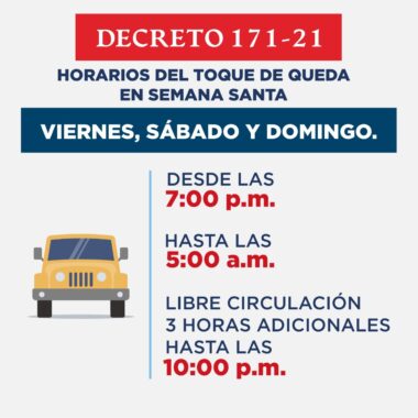 Sin embargo, el Viernes Santo, Sábado Santo y Domingo de Resurrección la medida que restringe la movilidad iniciará desde las 7:00 de la noche hasta las 5:00 de la mañana del día siguiente.