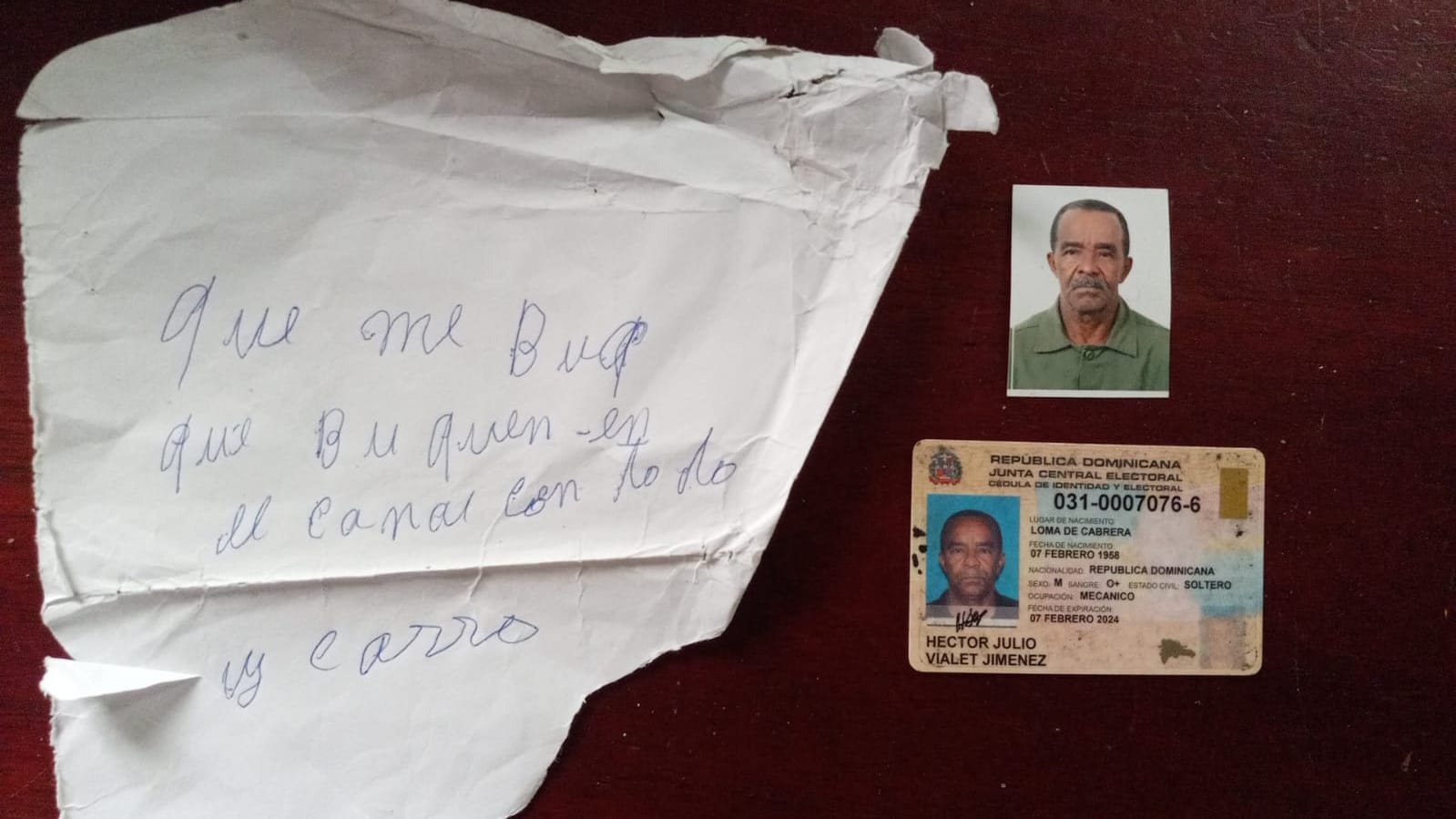 Según el director de Defensa Civil en Santiago, Francisco Arias, la víctima había dejado una nota en la que alertaba que, en caso de ser buscado, su ubicación sería en el canal, junto al vehículo.