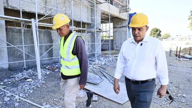 Durante la inspección, evaluó el progreso estructural del centro, actualmente en fase de obra gris, destacando que forma parte del fortalecimiento de la Red Nacional de Trauma impulsada por el presidente de la República, Luis Abinader.