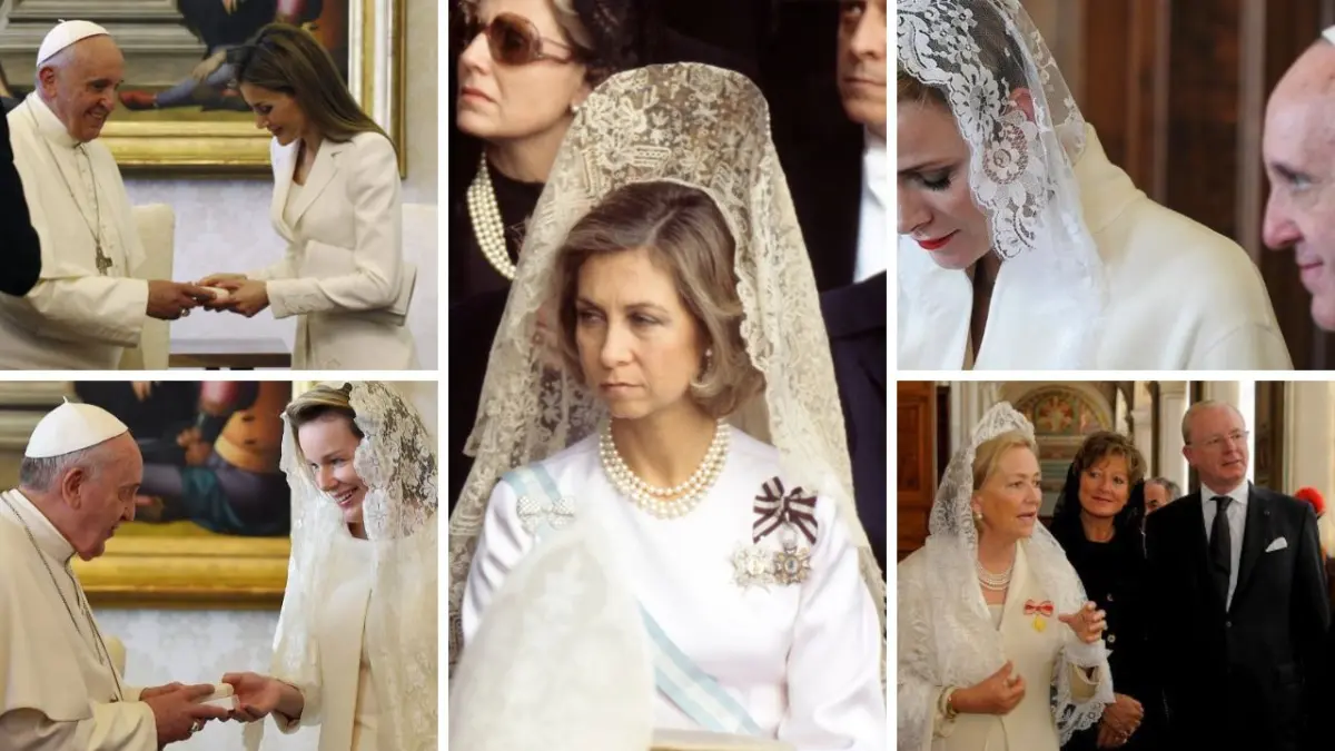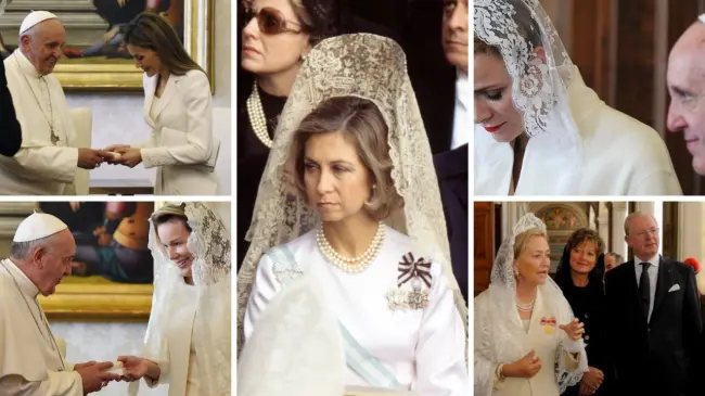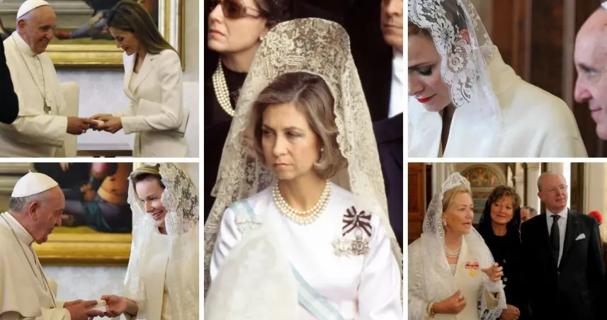 Porque el protocolo del Vaticano para las audiencias papales exige a las mujeres que utilicen generalmente el vestido negro y sin ningún escote, mangas que cubran los brazos y falda por debajo de la rodilla. Y la excepción es el blanco para algunas reinas católicas que, en el caso de las españolas, pueden lucir también mantilla blanca, sostiene el profesor.