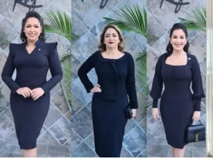 Rendición de cuentas con mujeres vestidas de elegancia y sobriedad