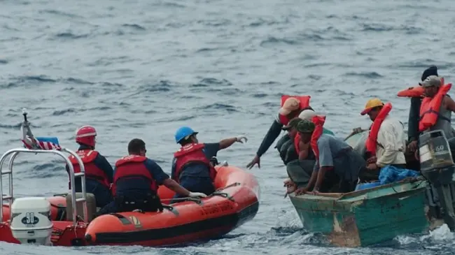 Aproximadamente a las 10:23 hora local (14:23 GMT), el helicóptero MH-60 Jayhawk de la Guardia Costera localizó una embarcación improvisada.