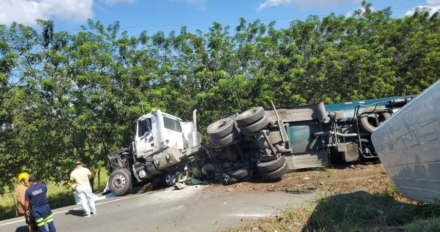 Además indicaron que se encuentran brindando asistencia a otro accidente de tránsito múltiple en el que un camión resultó volcado provocando un derrame de combustible, ocurrido en un tramo de la Autopista Duarte, perteneciente al municipio El Pino, provincia La Vega.