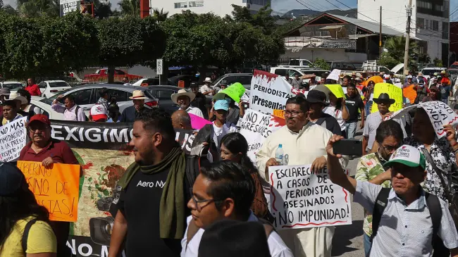 MÉXICO.– México.- Comunicadores mexicanos marcharon este miércoles en Chilpancingo, capital del sureño estado de Guerrero, acompañados de organizaciones sociales para repudiar el ataque a cuatro reporteros, de los que tres quedaron heridos, y exigir garantías para desempeñar su labor.