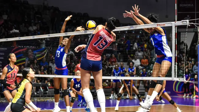 HERMOSILLO, MÉXICO.– HERMOSILLO, México.- Las campeonas defensoras República Dominicana derrotaron a Cuba 3-0 (25-20, 25-16, 25-23) para avanzar a las semifinales de la Copa Panamericana Sub-23 Femenina que se juega en la Arena Sonora de Hermosillo, México.