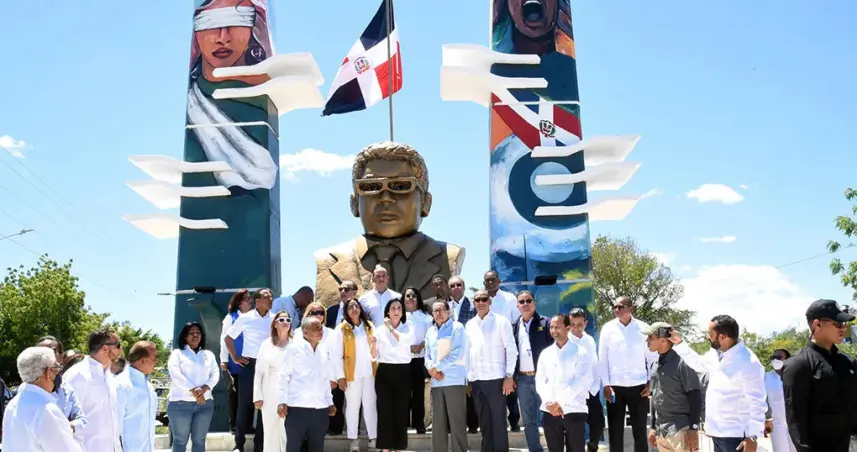 LAS MATAS DE FARFÁN. -La Primera Dama de la República, Raquel Arbaje, y el ministro de Obras Públicas y Comunicaciones, Deligne Ascención, resaltaron la trayectoria del periodista Orlando Martínez Howley, en ocasión del acto de develizamiento de un busto en su memoria, ubicado a la entrada de este municipio, del que era oriundo.