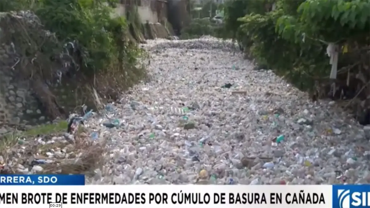 Santo Domingo.– Un enorme cúmulo de basura, compuesto principalmente por desechos plásticos, obstaculiza el cauce de la cañada de Guajimía en el sector Buenos Aires de Herrera, luego de que descendieran las aguas que inundaron varias viviendas, provocando daños materiales y dejando una fuerte contaminación en el lugar.