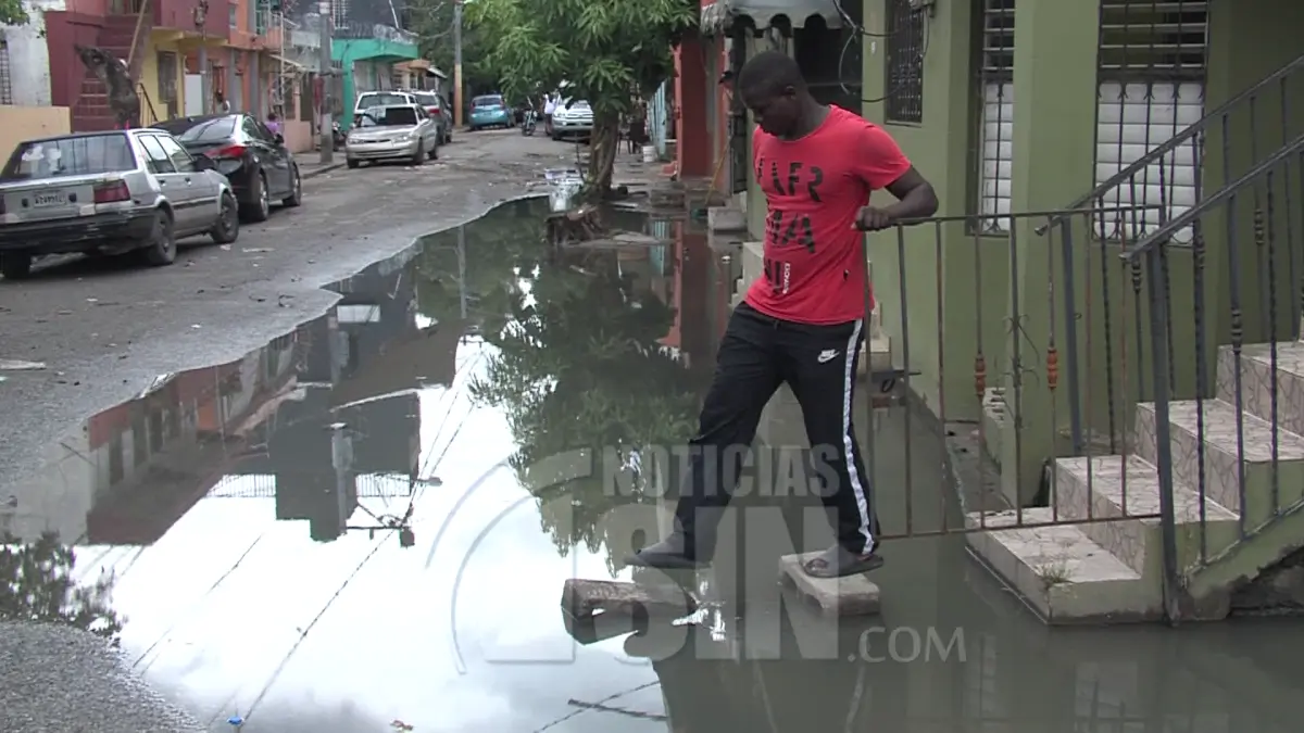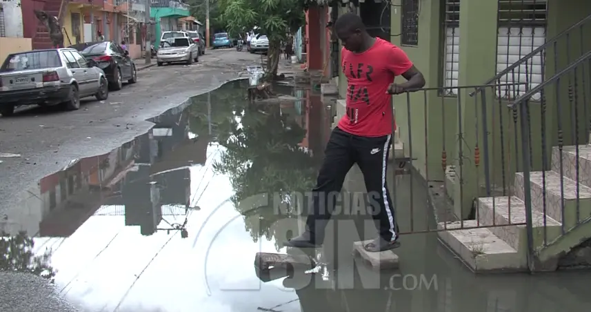 El cúmulo de agua está ubicado en la calle Trina de Moya Vásquez, esquinas cuatro y seis en Santo Domingo Este.