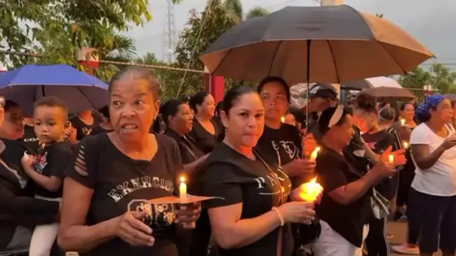 Duarte.- Con velas encendidas y vestidos de negro, residentes del municipio Villa Riva protestan por la terminación del Hospital Alicia de Legendre, que según los comunitarios lleva cinco años en reconstrucción.