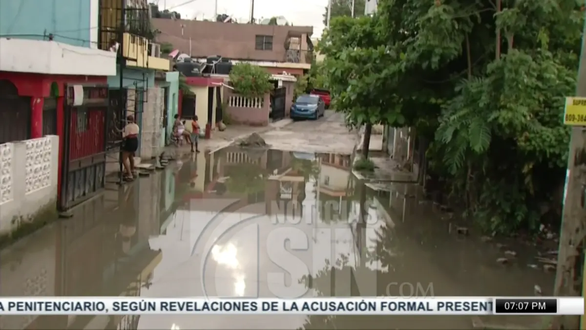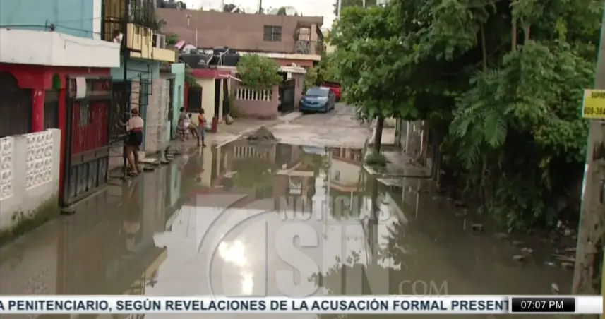 Los fuertes aguaceros han provocado un charco de agua en la calle primera del sector el Manguito de Sabana Perdida.