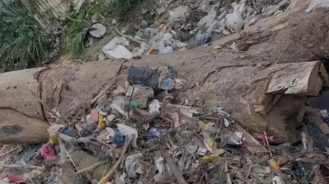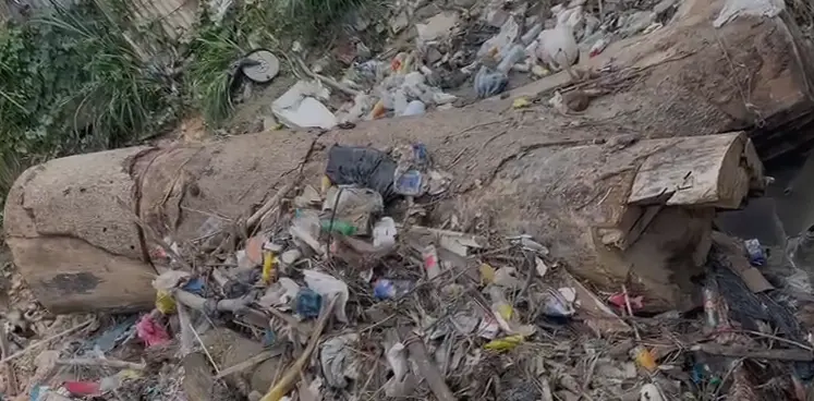 Explican que producto de la caída del tronco en medio de la cañada, los desechos sólidos y las aguas turbias apostadas no cuentan con el suficiente drenaje para poder trasladarse al otro lado del puente.