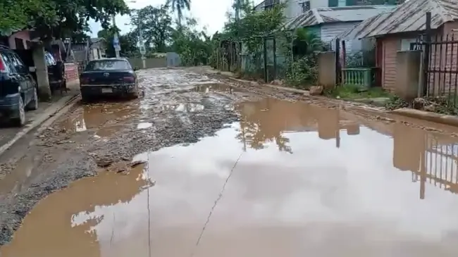 “Empezaron esta calle y la dejaron a medias. Así estamos hoy en día nadando en agua. Por favor, ministerio de Obras Públicas diríjanse al sector de Villa Verde en Manoguayabo para que vean nuestras condiciones. Aquí vivimos gente humilde”, expresó el hombre.