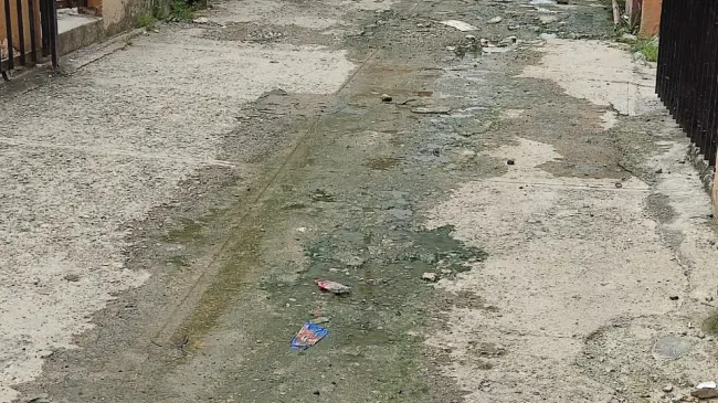 Los habitantes de ese sector denuncian que la calle principal del peatón permanece inundada de aguas negras y verdosas, producto del colapso del sistema de alcantarillado o una avería no atendida, generando un fuerte hedor y focos de contaminación.