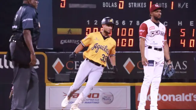Los amarillos volvieron a tomar el comando del juego en el octavo, rayando dos veces la pizarra, combinando sencillo de Luis Manuel González y dobles consecutivos de Bladimir Restituyo y Michael Pérez.