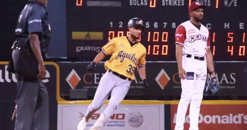 Bladimir Restituyo lideró a las Águilas bateando de 2-2, con doble y sencillo, y dos remolcadas. Luis Manuel González conectó dos imparables, Julio Rodríguez un jonrón con una carrera remolcada, Michael Pérez un doble con una carrera impulsada, Coco Montes una carrera empujada y Johan Camargo un hit por terreno de nadie.