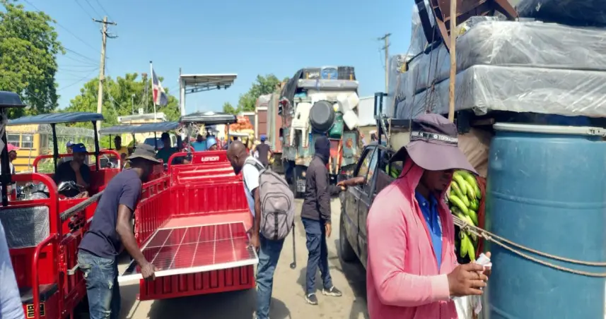 Largas filas de vehículos cargados con familias haitianas en zonas fronterizas.