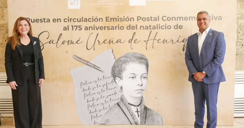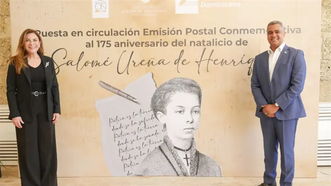 Santo Domingo. – El Instituto Postal Dominicano (INPOSDOM) y la Alcaldía del Distrito Nacional (ADN),realizaron el acto oficial de puesta en circulación de una emisión postal conmemorativa por el 175 aniversario del natalicio de Salomé Ureña de Henríquez, insigne educadora, poeta y pionera de la enseñanza superior femenina en la República Dominicana.