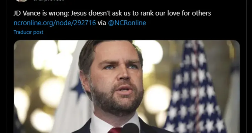 Poco antes, el 3 de febrero, León XIV, compartió un artículo de opinión de una periodista del National Catholic Reporter titulado "JD Vance se equivoca: Jesús no nos pide que jerarquicemos nuestro amor por los demás", una crítica a lo dicho por el vicepresidente estadounidense, convertido al catolicismo, sobre la necesidad de preocuparse primero de la propia familia, poniendo por detrás a los que tenemos más lejos.