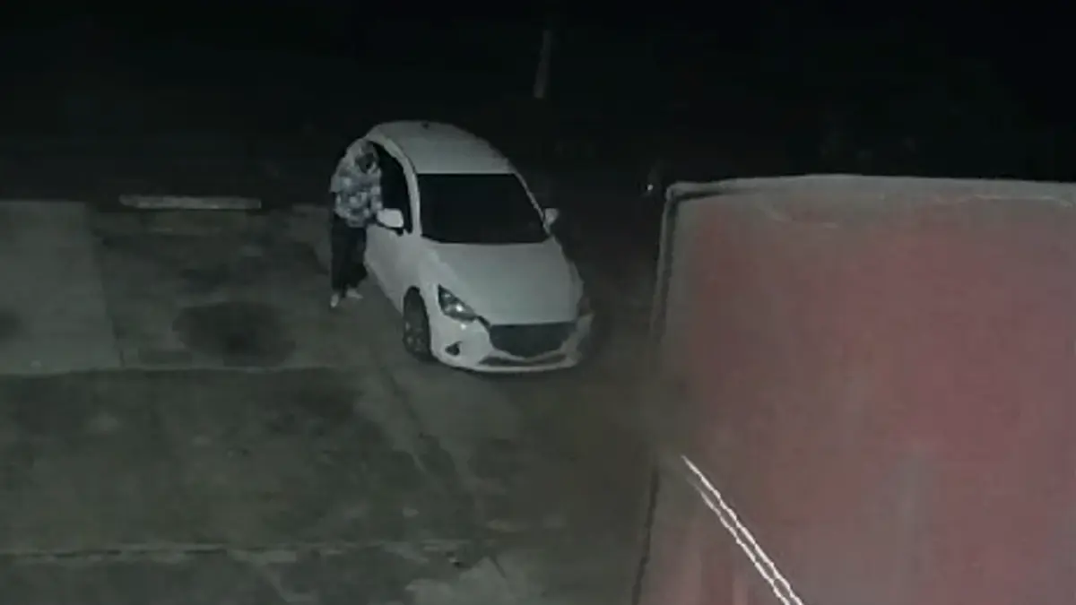 En un video enviado al Whatsapp de denuncias Noticias SIN, se observa a un individuo cuando se desmonta de un carro y procede a sustraer las piezas de uno de los vehículos estacionados en el parqueo.