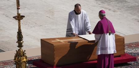 Cardenales y obispos acompañaron en procesión al féretro hasta uno de los laterales de la basílica, donde Francisco indicó que quería su tumba.