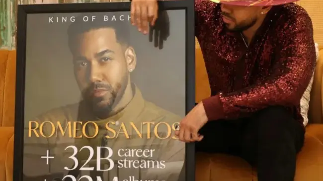 REDACCIÓN.- El “Rey de la Bachata” Romeo Santos, recibió una placa de reconocimiento por haber acumulado 32 billones de reproducciones, streams en las plataformas digitales, durante su carrera artística al ser uno de uno de los latinos más escuchados.