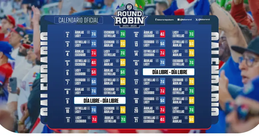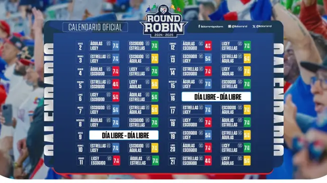 SANTO DOMINGO.- La temporada 2024-2025 de la Liga Dominicana de Béisbol Profesional (LIDOM) entra en una de las fases más emocionantes con el inicio de la semifinal formato Round Robin a partir de este jueves 2 de enero con un clásico: Águilas Cibaeñas visitan a los Tigres del Licey en el estadio Quisqueya. Mientras que las Estrellas Orientales recibirán a los Leones del Escogido en el Tetelo Vargas.
