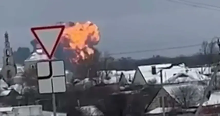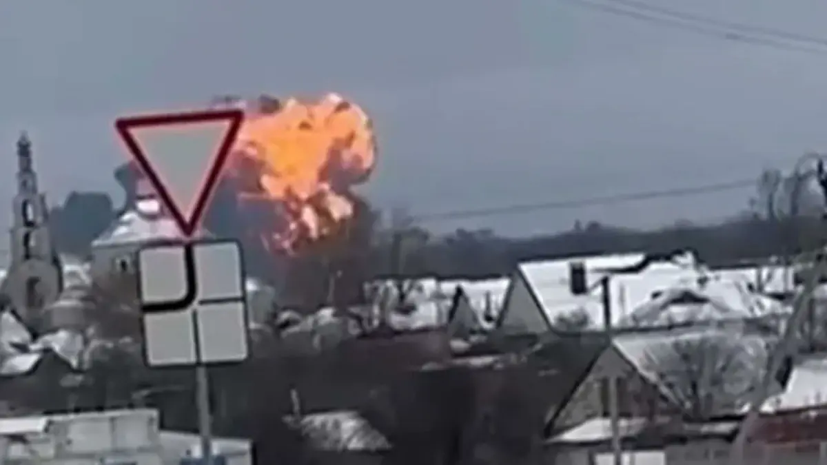 En las redes sociales de Bélgorod se pueden ver imágenes con el Il-76 precipitándose contra la tierra a un gran velocidad y estallando en un descampado.