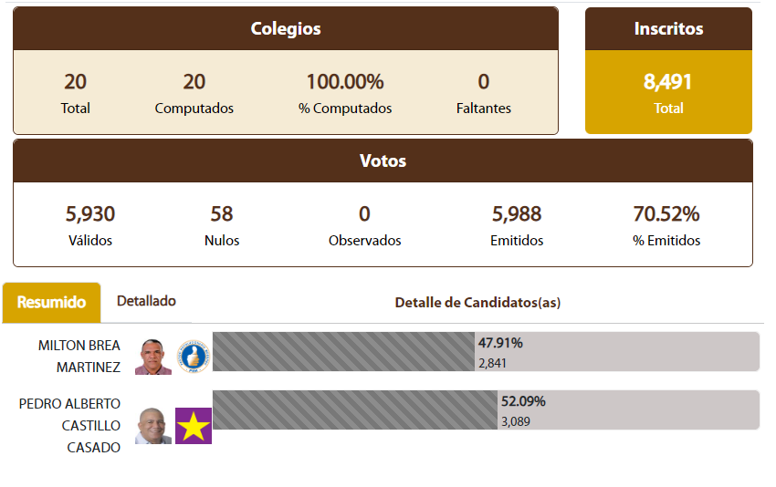 En el municipio de Sabana Larga, su hermano Pedro Castillo Casado del Partido de la Liberación Dominicana (PLD) y la Alianza Rescate RD derrotó al actual alcalde Milton Brea Martínez del Partido Revolucionario Moderno (PRM) logrando 3,084 votos para un 52.09%.