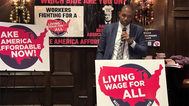 El vicegobernador demócrata del estado de Nueva York y candidato a gobernador en 2026, Antonio Delgado, aseguró a EFE durante el evento que "el salario mínimo actual en Nueva York es un salario de pobreza".