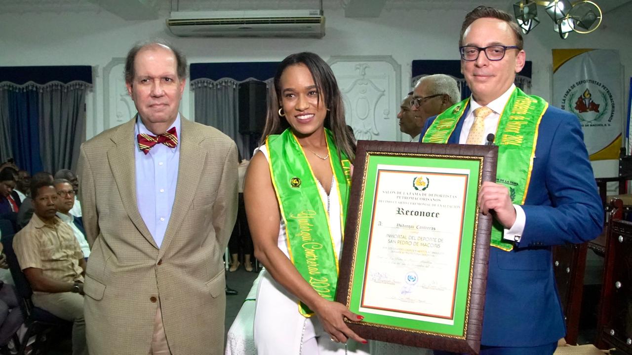 Recibieron el reconocimiento del deporte provincial Yuderqui Contreras, dueña del mayor y más variado palmarés de medallas logradas por un atleta de levantamiento de pesas; Yasmín Rodríguez y Maribel Silvestre, ex integrantes de la selección nacional de atletismo; y Kelvin de León, el mejor atleta dominicano de balonmano de la historia.