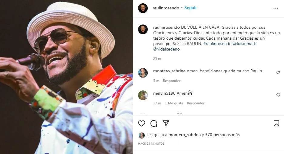 Salsero Raulín Rosendo ya ha sido dado de alta