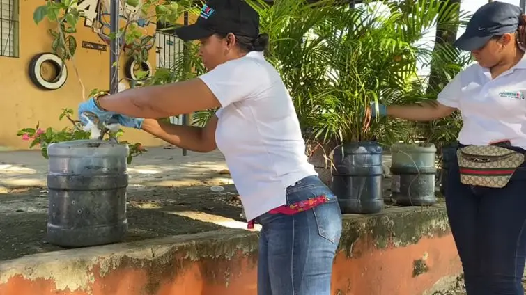 Santo Domingo.– SANTO DOMINGO.- Fumigando y echando larvicida en posibles criaderos de mosquitos, Salud Pública inició este sábado la jornada contra el Dengue en barrios de Los Guaricanos, en Santo Domingo Norte.