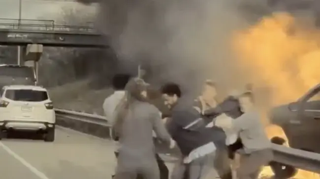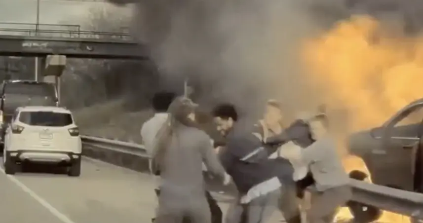 Finalmente, el grupo pudo sacar al conductor, un hombre mayor, a través de la ventana rota. El rescate ocurrió justo a tiempo, ya que segundos después, el lado del conductor del coche fue completamente devorado por el fuego.