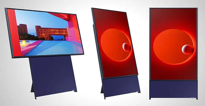 Bautizado como "Sero" (que significa "vertical" en coreano), el nuevo televisor de Samsung tiene una pantalla de 43 pulgadas, resolución 4K y color QLED, y viene equipado con un soporte que la mantiene alzada y permite la rotación de horizontal a vertical y viceversa.