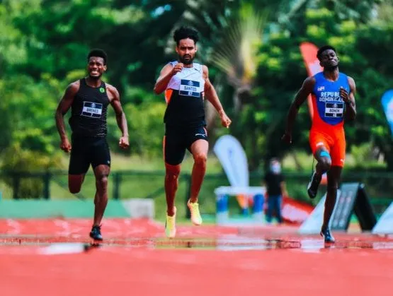 Fue la segunda carrera para Luguelin Santos en los últimos dos años y la Federación de Atletismo está muy satisfecha con el tiempo que realizó este sábado. Santos, denunció que el Ministerio de Deportes no lo ha apoyado durante los entrenamientos para este evento.