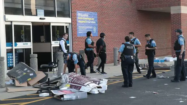 El diario The Chicago Tribune informó de que los saqueos comenzaron poco después de la medianoche, cuando grupos de manifestantes destrozaron vidrieras en la Avenida Michigan, entraron a las tiendas y empezaron a llevarse bolsas llenas de mercancías.