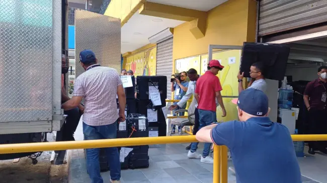 Santo Domingo.– SANTO DOMINGO.- Santo Domingo Oeste puso en marcha la logística para la redistribución de las valijas y equipos de transmisión a los 77 recintos que la componen para las elecciones del domingo.