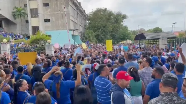 Santiago.– SANTIAGO. - Cientos de profesores se concentraron frente a la regional de Educación en Santiago en demanda de que el Ministerio de Educación, cumpla con las demandas que han venido haciendo.