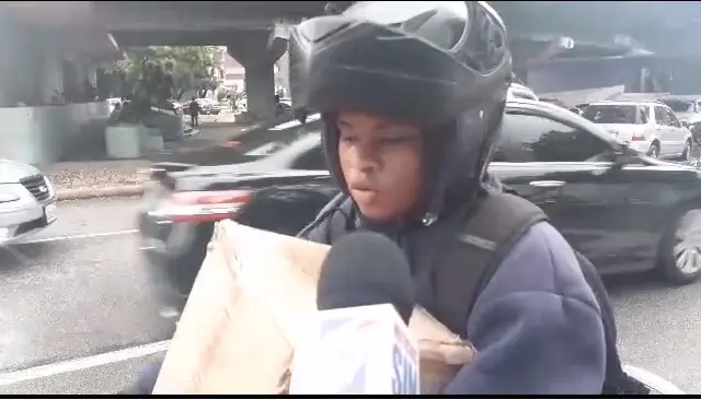 Jostín Álvarez, mensajero empresa privada, quien pasaba por el lugar y habló con Noticias SIN, dijo que la tarde de este martes estuvo a punto de caerse al tropezar con el contén debido al agua que se acumula en esa zona.