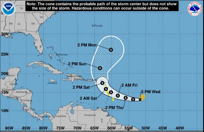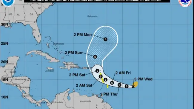 Las islas de Barbados, Dominica, Martinica y Guadalupe se hallan bajo "vigilancia de tormenta tropical", es decir, con el pronóstico de registrar condiciones ciclónicas dentro de 48 horas.