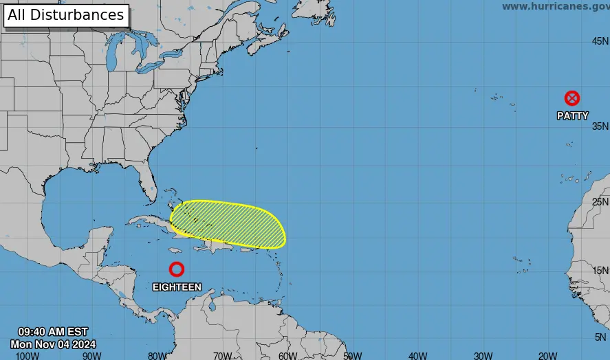 Por otro lado, la tormenta tropical Patty, que se formó en la mañana del sábado en el extremo oriental de la cuenca atlántica y no suponía amenazas para zonas costeras, se disipó este lunes, cuando se hallaba a 945 kilómetros de las islas Azores, según el NHC.