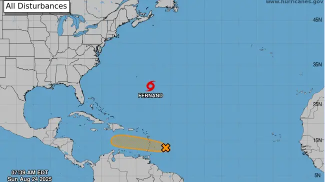 Además, se vigila una zona de aguaceros y tormentas eléctricas asociada a una onda tropical, localizada a 724 kilómetros al este de las Antillas Menores.