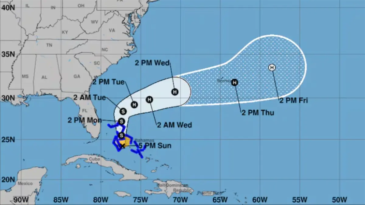 “En la trayectoria del pronóstico, se espera que el centro del sistema se mueva a través del centro y noroeste de las Bahamas esta tarde y esta noche, y luego gire hacia el este-noreste, alejándose del sureste de los Estados Unidos a mediados de esta semana”, detalló el CNH.