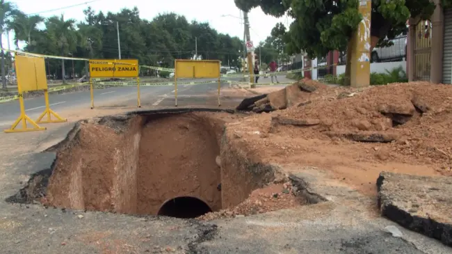 Se forma socavón en intersección de la Avenida San Vicente de Paúl