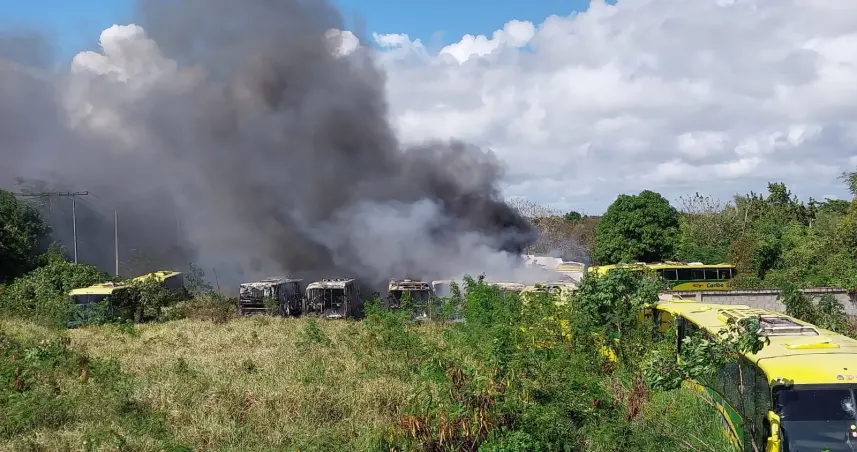 Se registra incendio en depósito de autobuses dañados de Caribe Tours