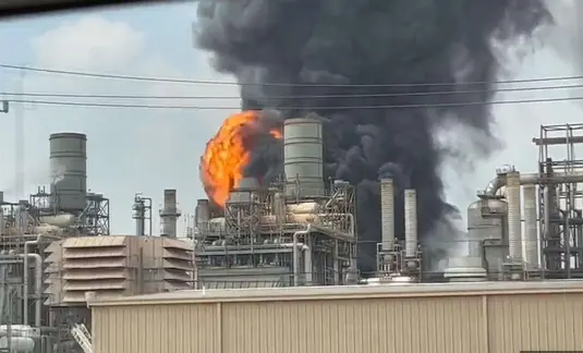 La cadena Fox 26 Houston informó que se trata de una planta que pertenece a Pemex.