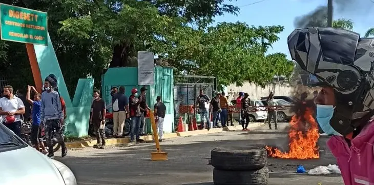 Santo Domingo.- Un fuerte disturbio se registró la mañana de este martes en el centro de retención vehicular de la Dirección General de Seguridad de Tránsito y Transporte Terrestre (Digesett), Canodromo El Coco, donde motoconchistas denuncian que la entidad no quiere devolver sus motores a pesar de pagar las multas.
