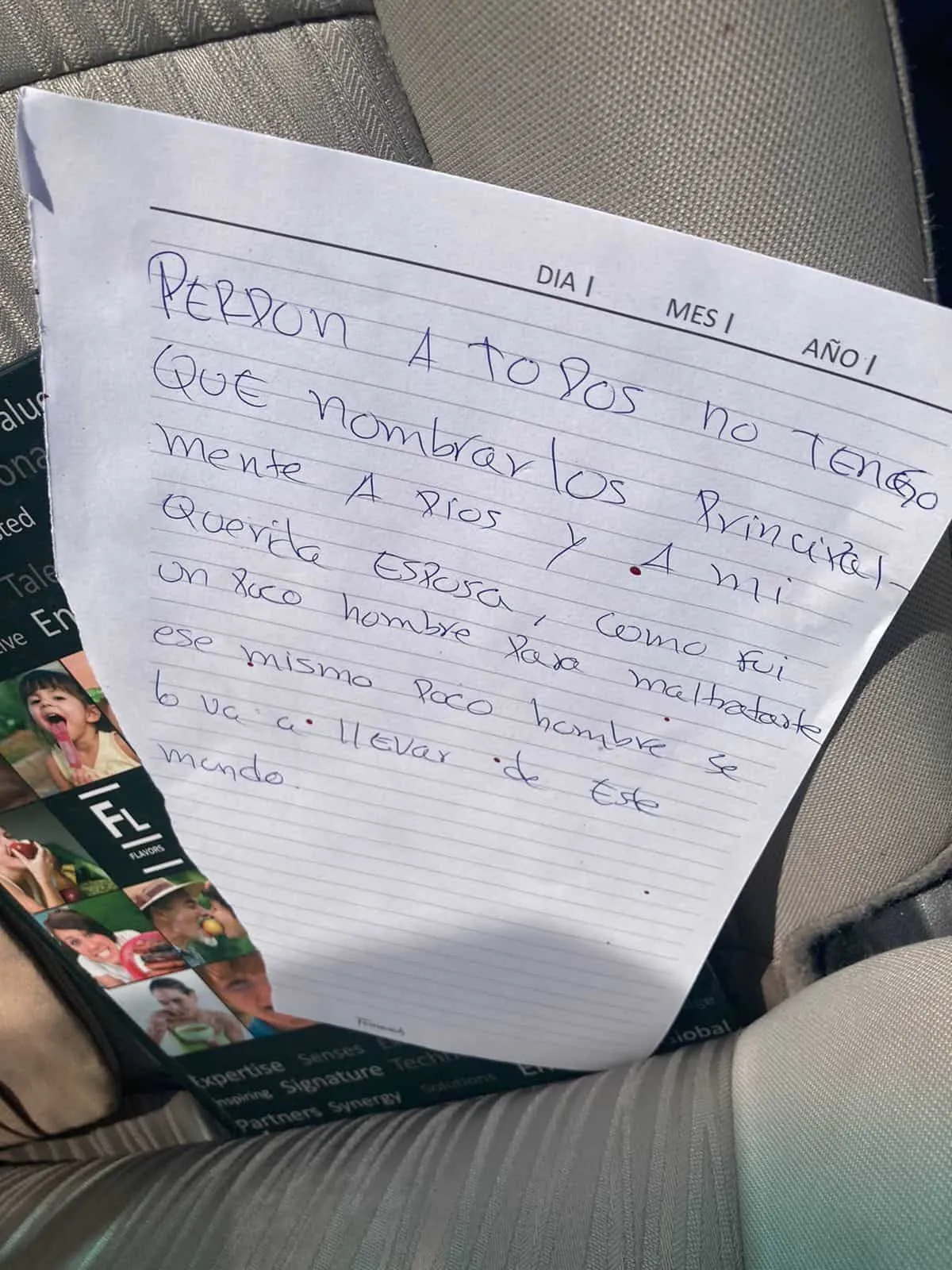 La primera parte de la nota decía, “perdón a todos, no tengo que nombrarlos, principalmente a Dios y a mi querida esposa”.