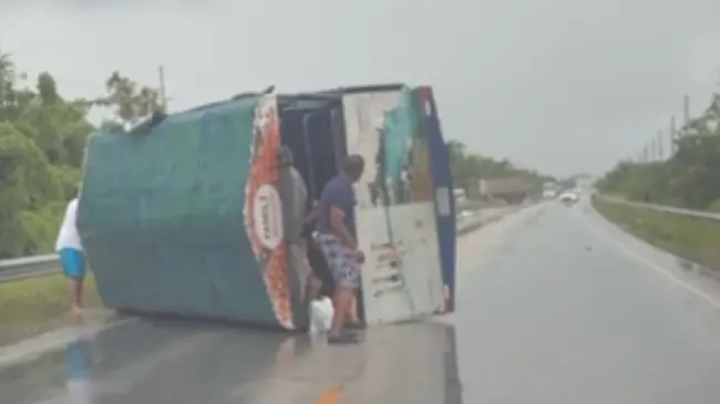 Se vuelca camión safari con turistas en el Boulevard Turístico del Este
