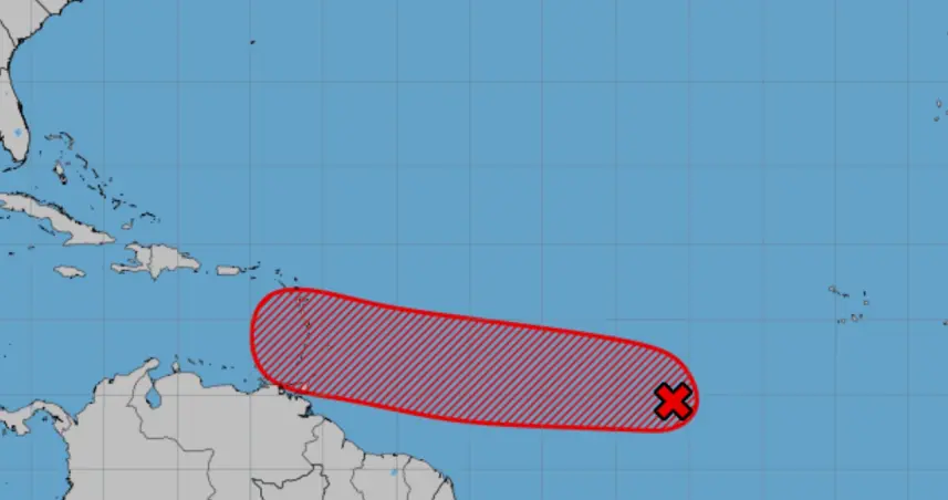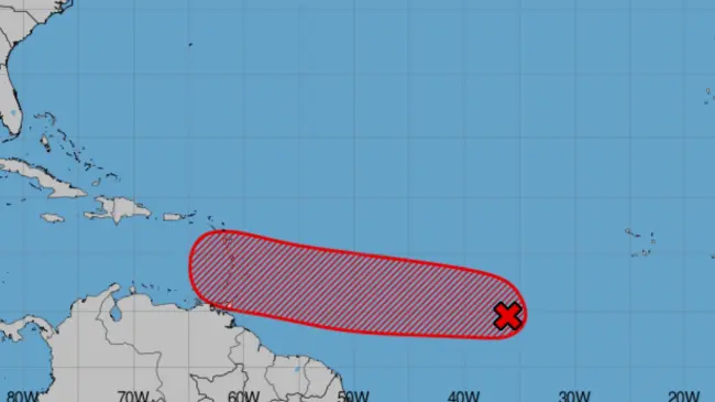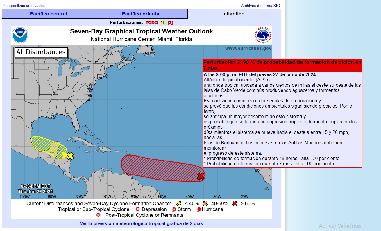 Se espera que se fortalezca en los próximos siete días y pueda ser que se convierta en una depresión tropical o tormenta tropical. Este sistema se mueve hacia el oeste a una velocidad entre 15 y 20 millas por hora hacía las islas de Barlovento.